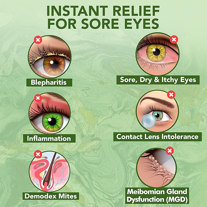 - MULTI-PURPOSE: Perfect for ocular hygiene, you will get that cleansing easily! Excellent for cleaning debris, dirt, and oils that are left on your eyes and lids. You won’t get any burning sensation because it’s gentle on the skin and non-irritating. Relieves dry and itchy eyes, Blepharitis, and Demodex.