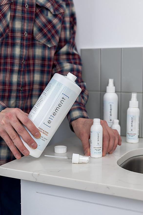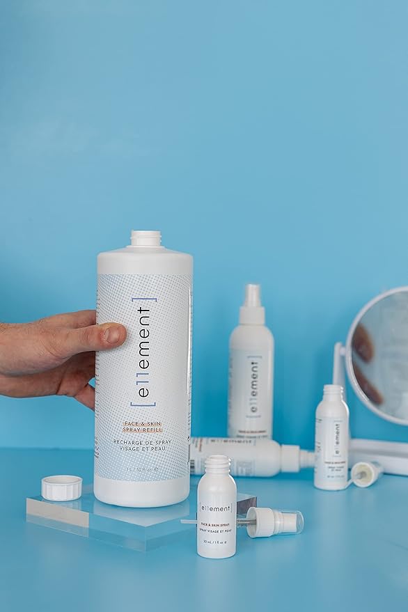 Hypochlorous Acid Spray - 1 L Refill – Acne Prone Skin – Eczema - Tattoo Aftercare – Piercing Aftercare – Saline Toner – Facial Cleanser – Lash Cleanser - All Natural Face and Skin Spray - e11ement