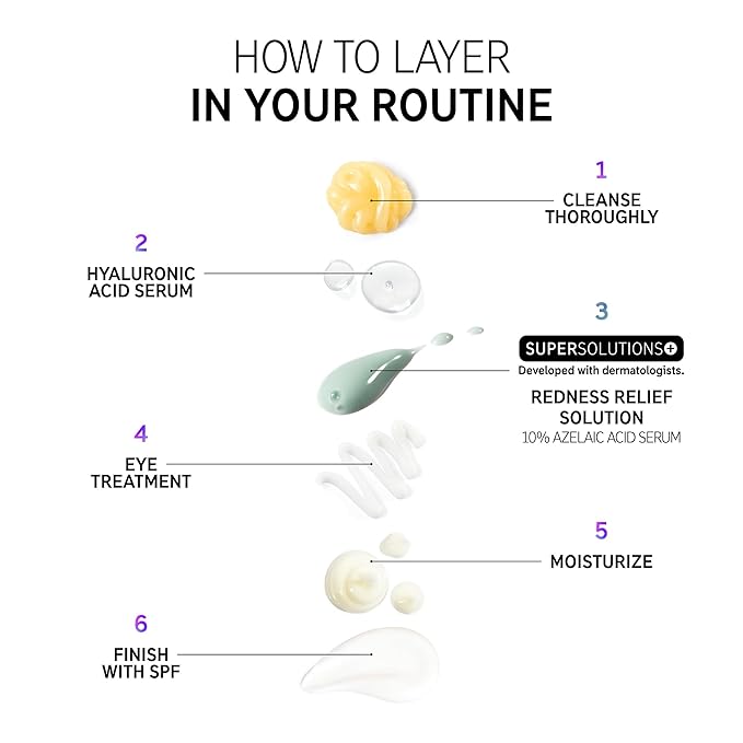 - Formulated with 10% Azelaic Acid to visibly reduce the appearance of redness and soothe skin that feels irritated.
