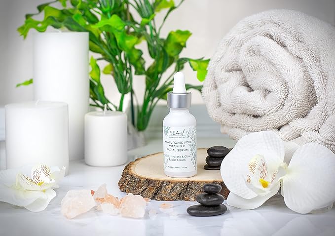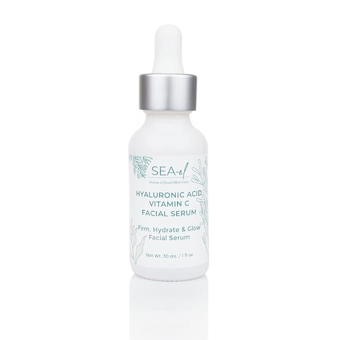 Sea-el Hyaluronic Acid & Vitamin C Facial Serum Drops Firming Hydration & Glow Anti Aging Face Moisturizer - Daily Wrinkle Diminishing Skin Care for Women & Men, Vegan - 1 Fl Oz