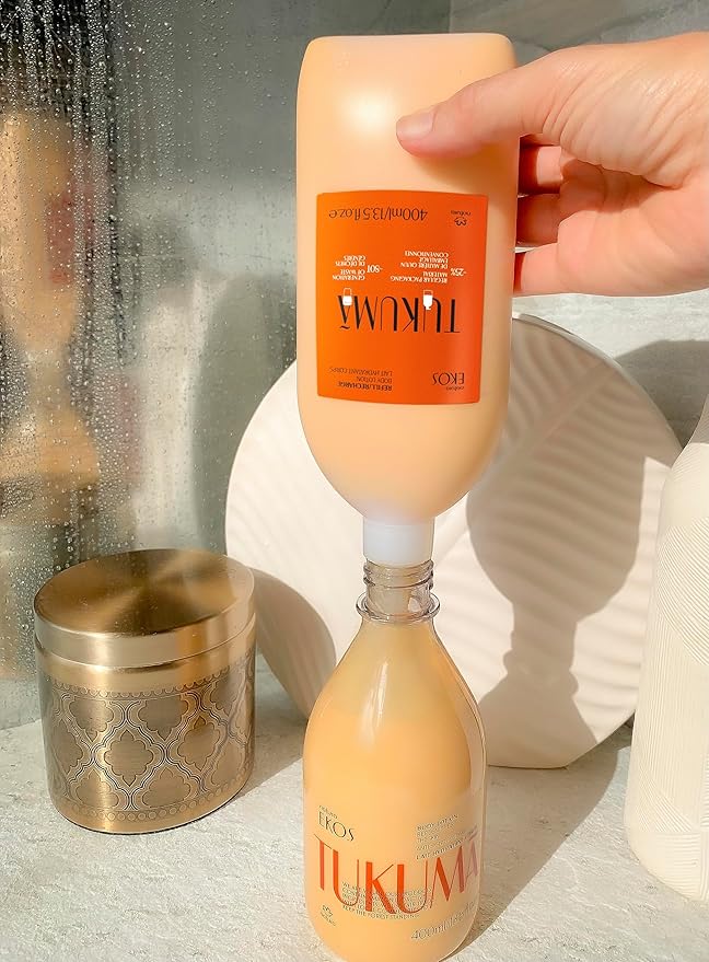 - Meet Ekos Tukumã - A moisture restoring body lotion that boosts hyaluronic acid while preventing signs of aging. Deliciously scented with a floral fragrance that combines the creamy yet fruity aspect of the exotic Tukumã pulp with a rustic woody, and warm amber finish.