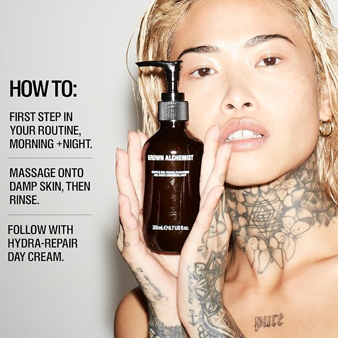 Grown Alchemist Gentle Gel Facial Cleanser (200ml) Natural Face Wash. Hydrating Bergamot & Rosebud Exfoliating with Willow Bark, a Salicylic Acid Alternative.