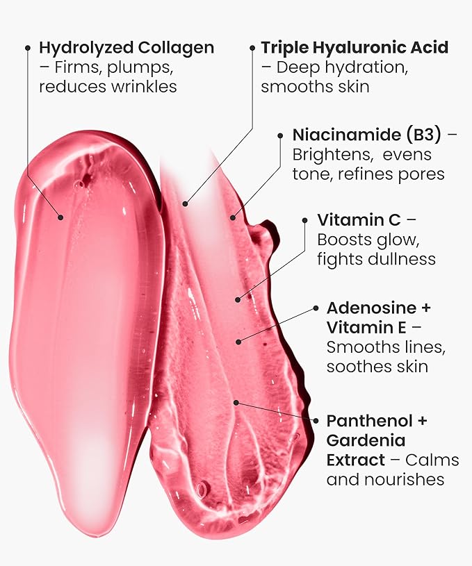 - 🧬 FIRM, LIFT, AND REJUVENATE WITH DUAL COLLAGEN POWER - Our formula combines Collagen + Hydrolyzed Collagen - with smaller molecular weight for deeper absorption, plus Adenosine and Vitamin E (Tocopheryl Acetate) to visibly firm skin, smooth fine lines, and restore elasticity