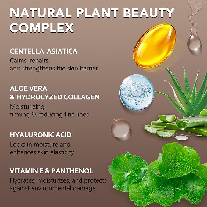 - [Gentle Herbal Formula] Enriched with Centella Asiatica,Aloe, Vitamin E,and other plant extracts,it deeply hydrates,soothes, and repairs the skin.Mild and non-irritating,suitable even for sensitive skin
